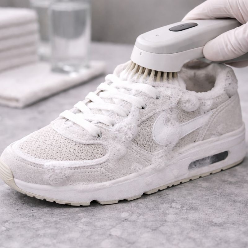 Foam-based cleaning that reaches uppers, midsoles, edges, and stitching evenly.